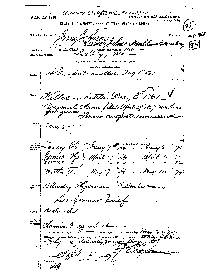 Item 034 from Jane Johnson US Civil War Widow's Pension File Certificate 130892