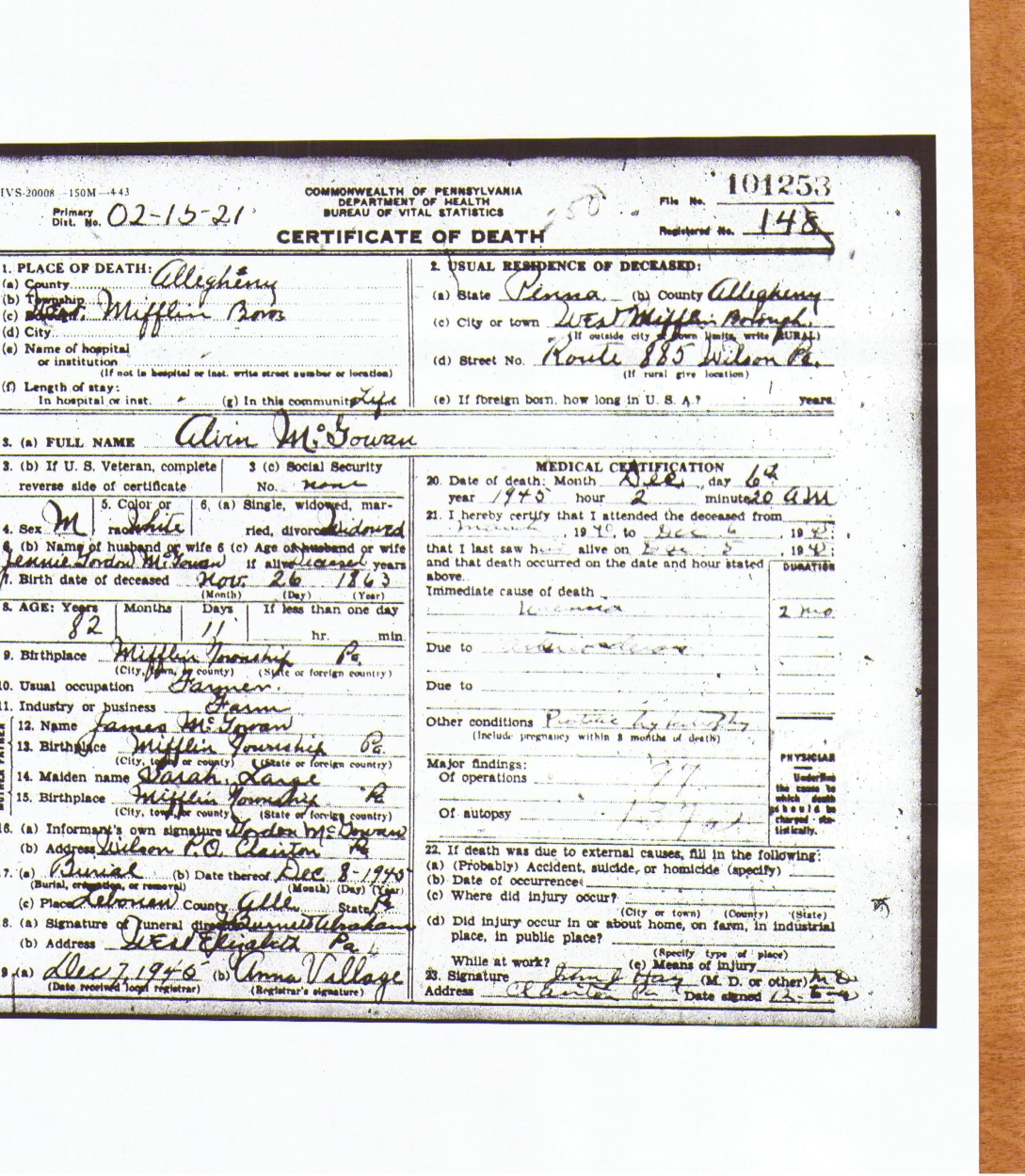 McGowan Alvin Death Cert 19451206 US PA Allegheny Co West Mifflin Boro.jpg