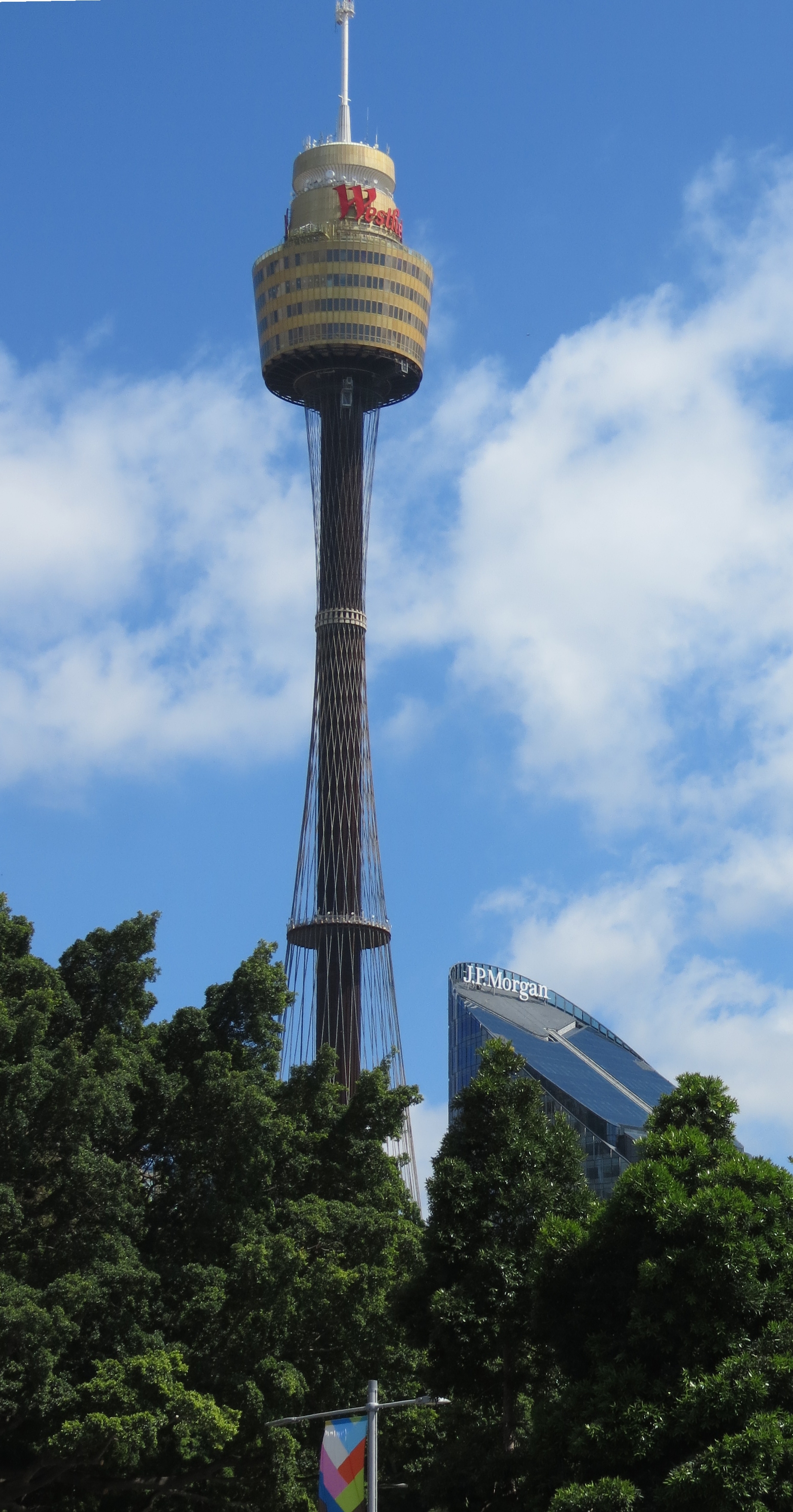 Sydney Tower. Tallest structure in town, but surprisingly difficult to see from many parts of town (including directly under it when trying to enter it). The next few images are from inside it. (IMG_4100.SX40A.JPG)