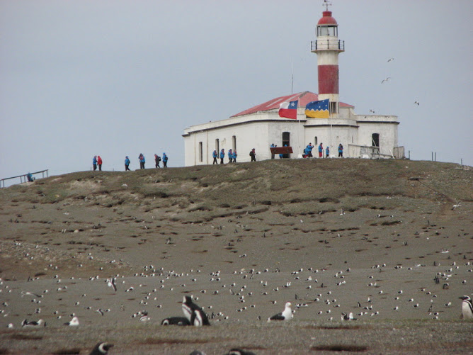 Magdelena Island (Isla Magdelena in Spanish). This is in the Strait of Magellan. This is the lighthouse (now museum). However, the real purpose of this photo is to show that it's penguins, all the way up.