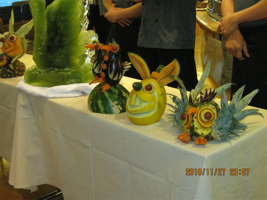 That night, after leaving Port Lockroy, and after dinner, the some of the crew (galley staff) gave a demonstration of artisitc vegtable carving.