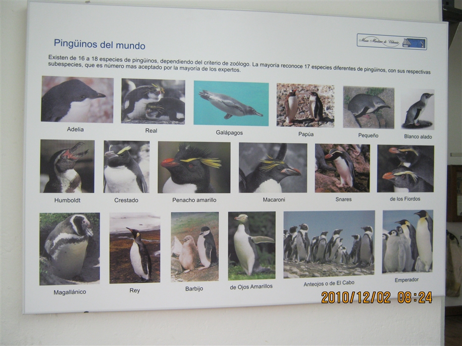 In the naural history part of the museum. There are the 17 or 18 different kinds of penguins, with their names in Spanish.