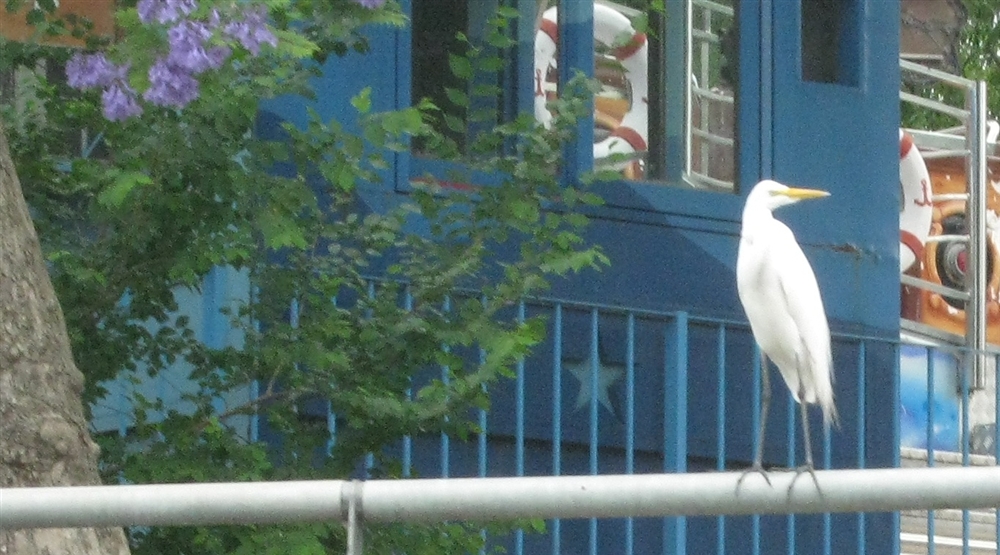 Just seemed to be a cool-looking bird next to a jackaranda tree.