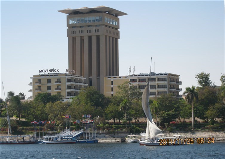 November 25, 2011 – Flew from Cairo to Aswan, lunch in Movenpick Hotel in Aswan (on north end of Elephantine Island), bus to Abu Simbel, arriving after dark.
