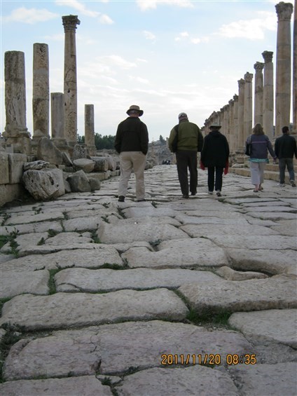 This is after we have reached the end of the hilltop path, come downhill, and now were going back toward Hadrian's Gate. Here we are walking on the ancient pavement on what was apparently the main street. I seem to recall there were chariot or wagon ruts in the pavement, but I can't see any in this photo.
