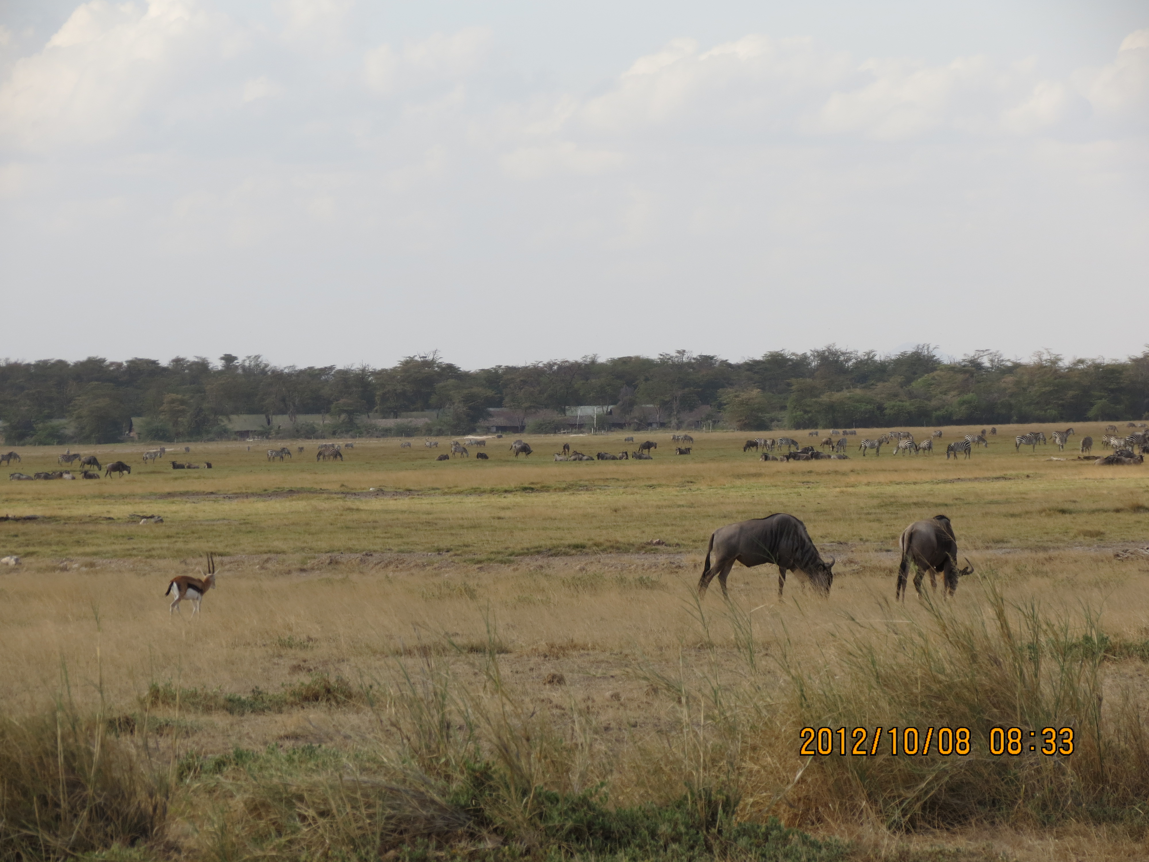 Lion is not in this photo, but it is in the seqence I took while we were following the line. Most of these animals seemed aware the lion was around. They kept an eye on it, rather than trying to move away. I suspect if one had started to run, that might trigger a chase reaction in the lion.