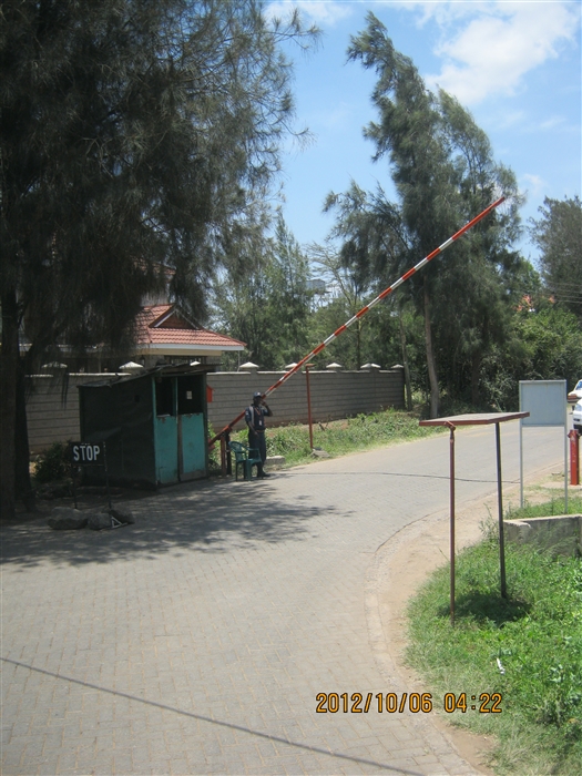 Saw many of these drop gates (? -- not sure what the correct term is). This was on what looked to be an ordinary street, but is was apparently a semi-gated community (they let our bus to by to just pass thru the neighborhood on the way to and from the elephant orphanage). I suspect if a vehicle looked like it had people up to no good they would not lift the gate.